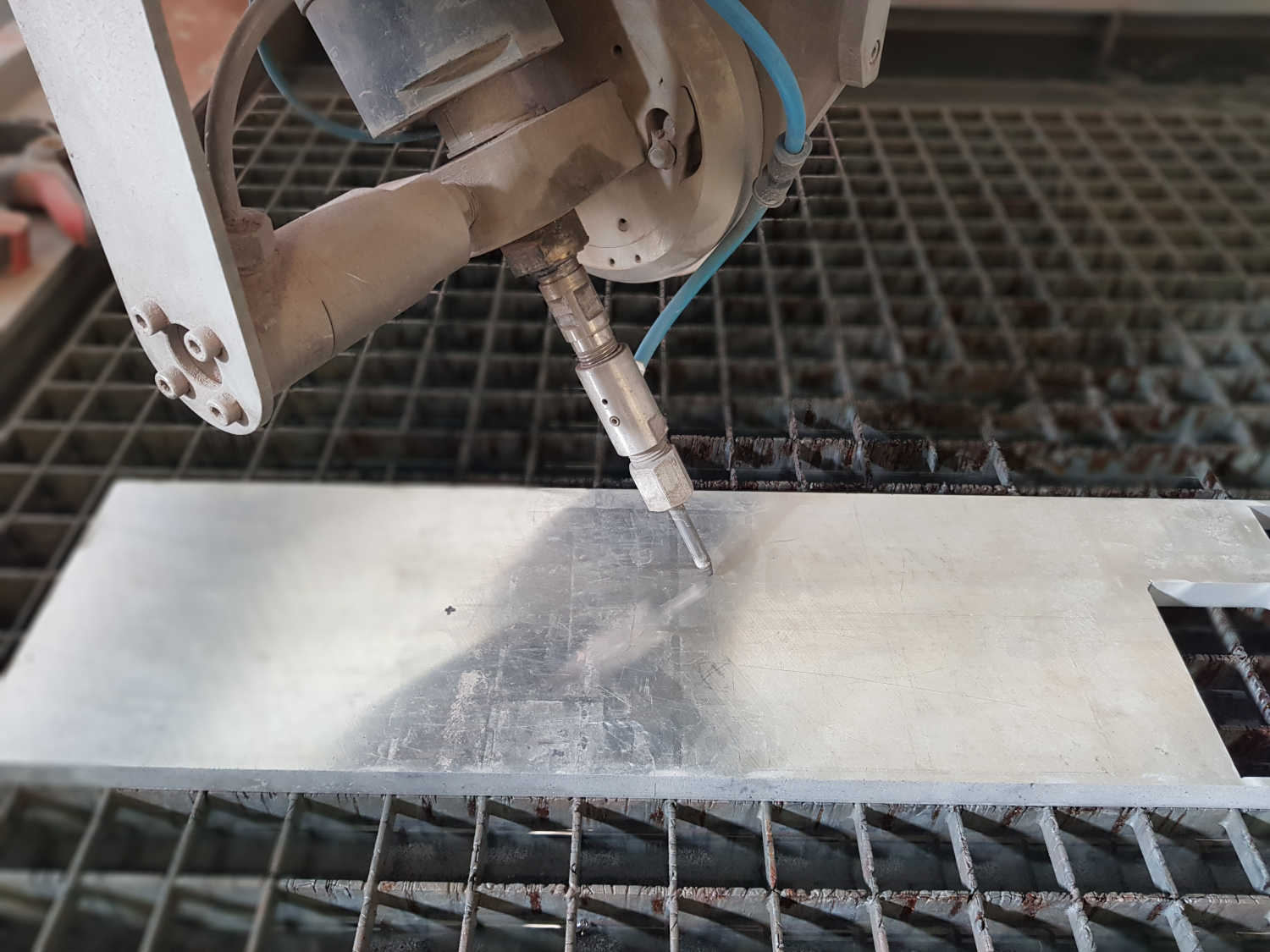Werfen Sie die Vorstellung, dass sich mit dem Wasserstrahl nur flächige Bauteile schneiden lassen, über Bord! Denn durch die gezielte, räumliche Bewegung des Wasserstrahles lassen sich auch dreidimensionale Geometrien herstellen. Vom anfasen von Schnittkanten bis hin zur Bearbeitung von komplexen 3D-Bauteilen können wir Ihnen fast jeden Wunsch erfüllen.